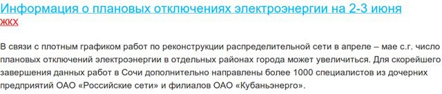 «Вчера стало известно об увольнении генерального директора «Кубаньэнерго» Георгия Султанова. Компания занималась подготовкой инфраструктуры, в том числе для предстоящей Олимпиады в Сочи. Однако регулярных отключений, несмотря на немалые инвестиции, сетевой компании избежать не удалось.»