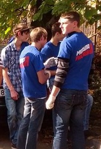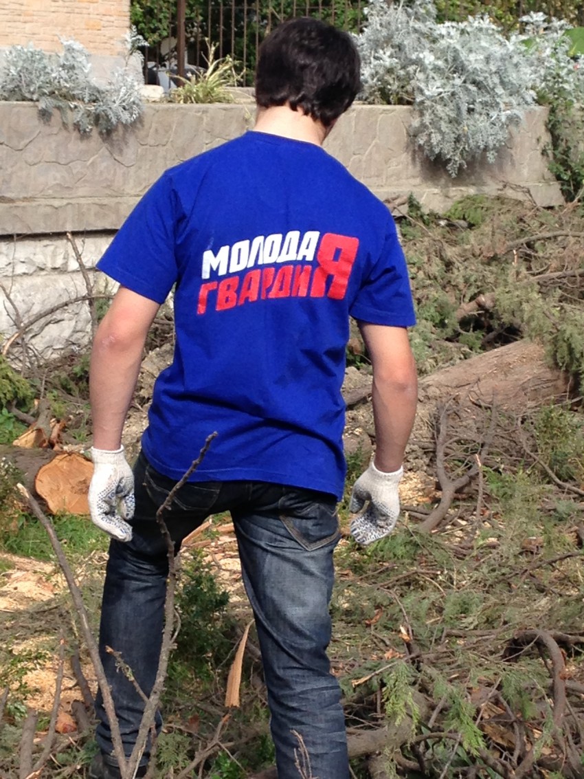 Нет, есть несколько молодцев в майках Молодой гвардии, и еще около десятка людей с камерами и фотоаппаратами… Но работают, в основном, пенсионеры…