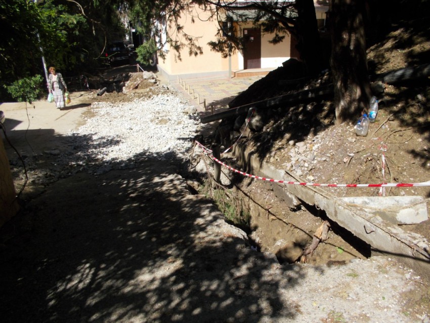 — чтож вы как свиньи работаете, раскопали, бросили, люди не то что проехать с коляской, пройти не могут. А ведь в смете на работы была вложена сумма на восстановление покрытия и на благоустройство территории рядом.