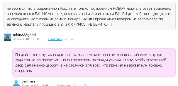 им больше по душе бардак, «проходные дворы», сломанные детские площадки, загаженные дворы, использованные шприцы разбросанные по парадным и так далее. Там люди платят за уборку, охрану, благоустройство, они всё содержат на свои деньги, и почему они должны пускать на свою территорию чужаков которые ни за что не платят? С какого перепуга посторонние будут пользоваться благами оплаченными жильцами этого дома?