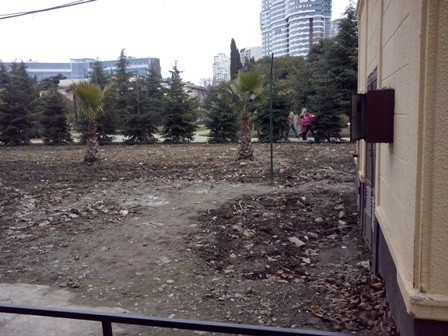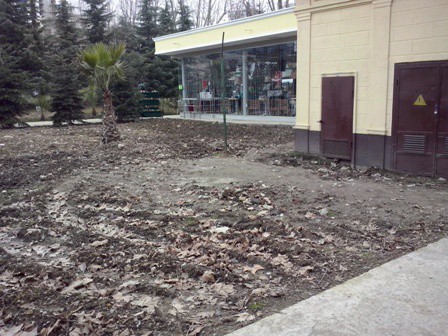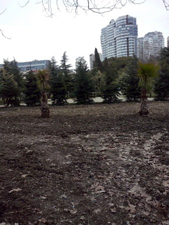 RSS свернуть / развернутьНа фото видно, что со стороны сквера территория густо (слишком густо) засажена ёлками. Со стороны Империи Зла, простите Туризма, распаханная территория посередине для отвода глаз украшена редкими пальмами.