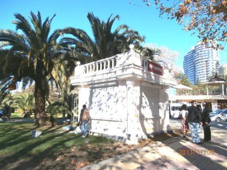 Модернизированный павильон выдержан едином архитектурном стиле. Кусок металлопрофиля, символизирующий остатки забора, как визитная карточка Сочи последних лет сохранен: