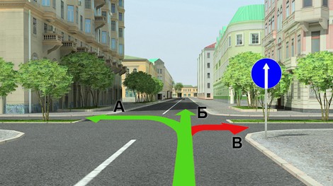 Может быть применен знак с конфигурацией стрелок, соответствующей требуемым направлениям движения на конкретном пересечении.