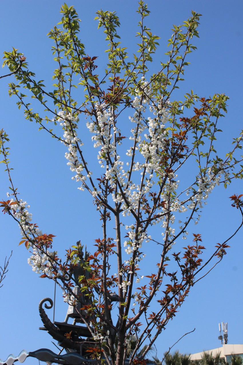 В сквере Кооперативный зацветает сакура, а глициниевая аллея, похоже - отцвела...