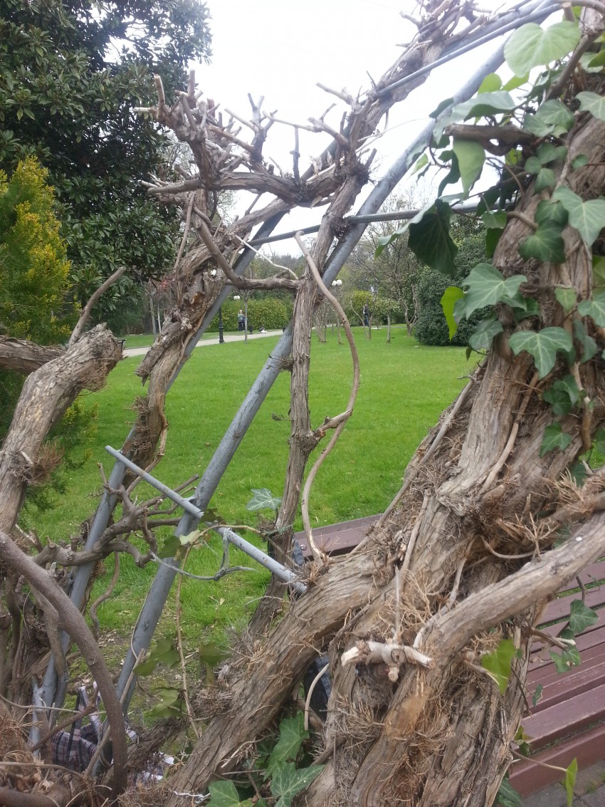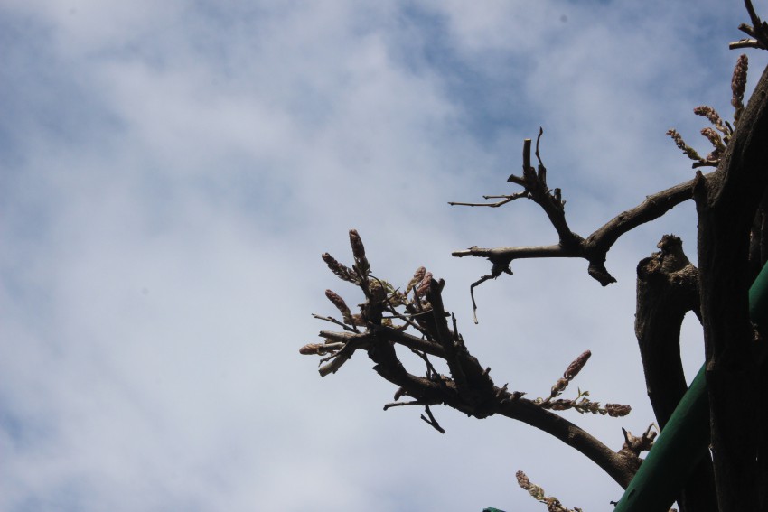 Всё это время несчастные растения безжалостно кронируют. Сегодня прошла по аллее — практически все растения не подают признаков жизни!!! Насчитала три глицинии ( на двух есть кисти цветов, на одной у молодого побега маленькая почка) может ещё где-то что-то есть…