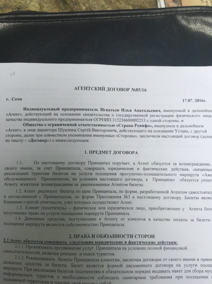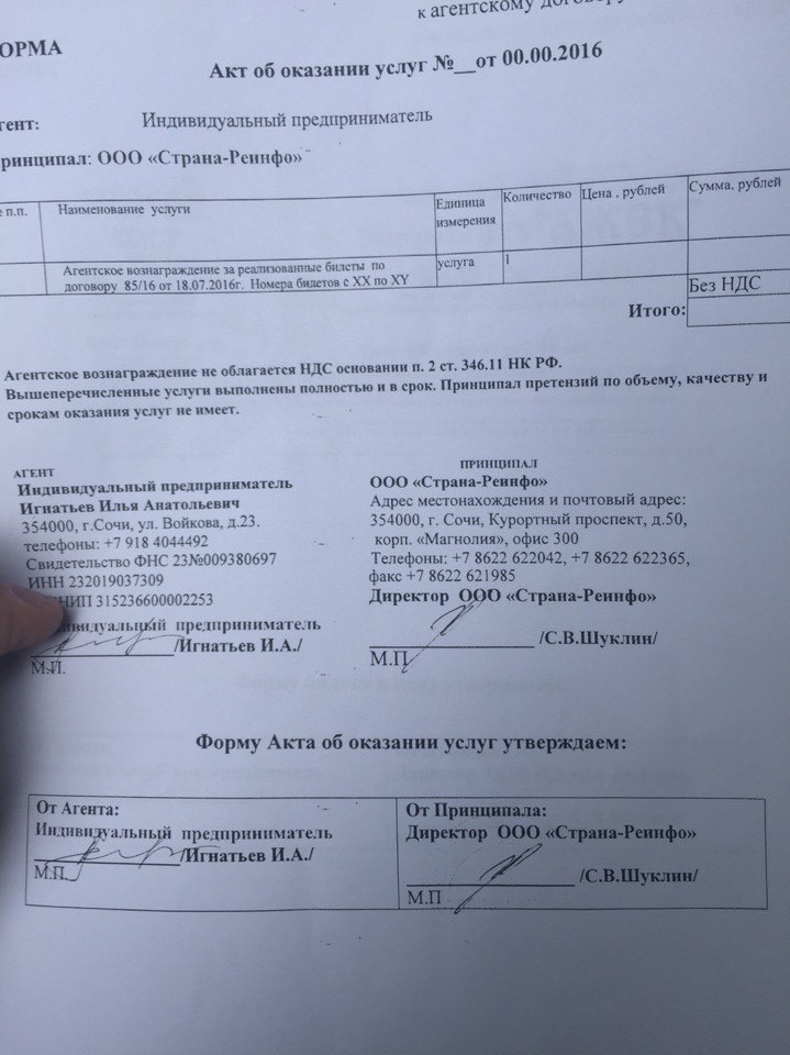Читаем корявенькую фотографию агентского договора между ИП и ООО пункт 2.1.2: