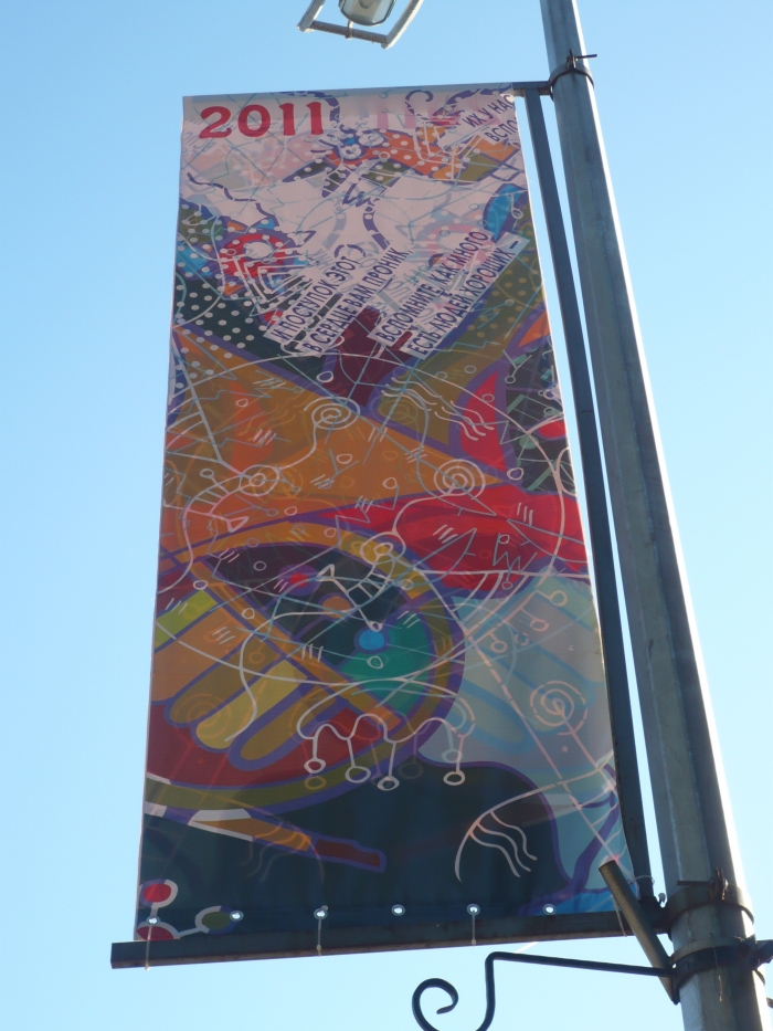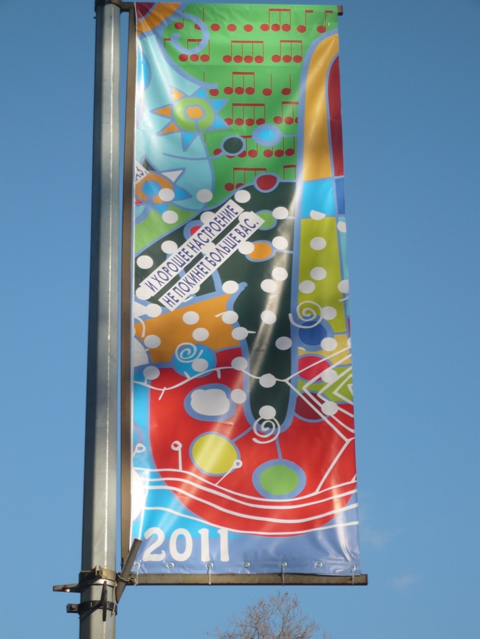Начинается эта странная анфилада, баннером, оставшимся с празднования «дня города»