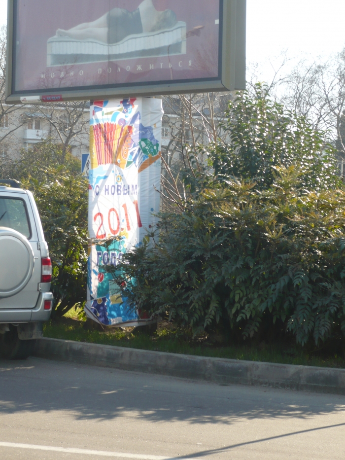 Домой я пришла со страшной головной болью, в мозгу молоточками стучали фразы «если вы нахмурясь...»,«и поступок этот...», «и хорошее настроение...», еще пару таких креативных оформлений города и можно смело — в психушку. В бюджет города на 2011год заложено на рекламу более 15 млн рублей, интересно бы узнать сколько на ЭТО уже потратили…