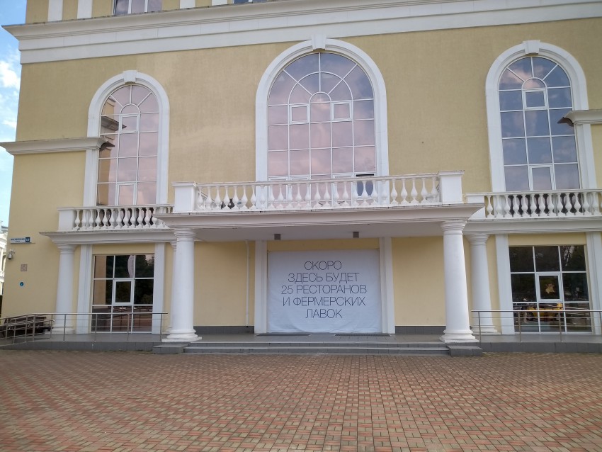 Очень жаль, что жители города лишились светлого и удобного выставочного зала ради очередных закусочных, следуя чьим-то меркантильным интересам. Возможно, я в чём-то не прав, но вывеска на этом здании меня в этом настойчиво и навязчиво убеждает.