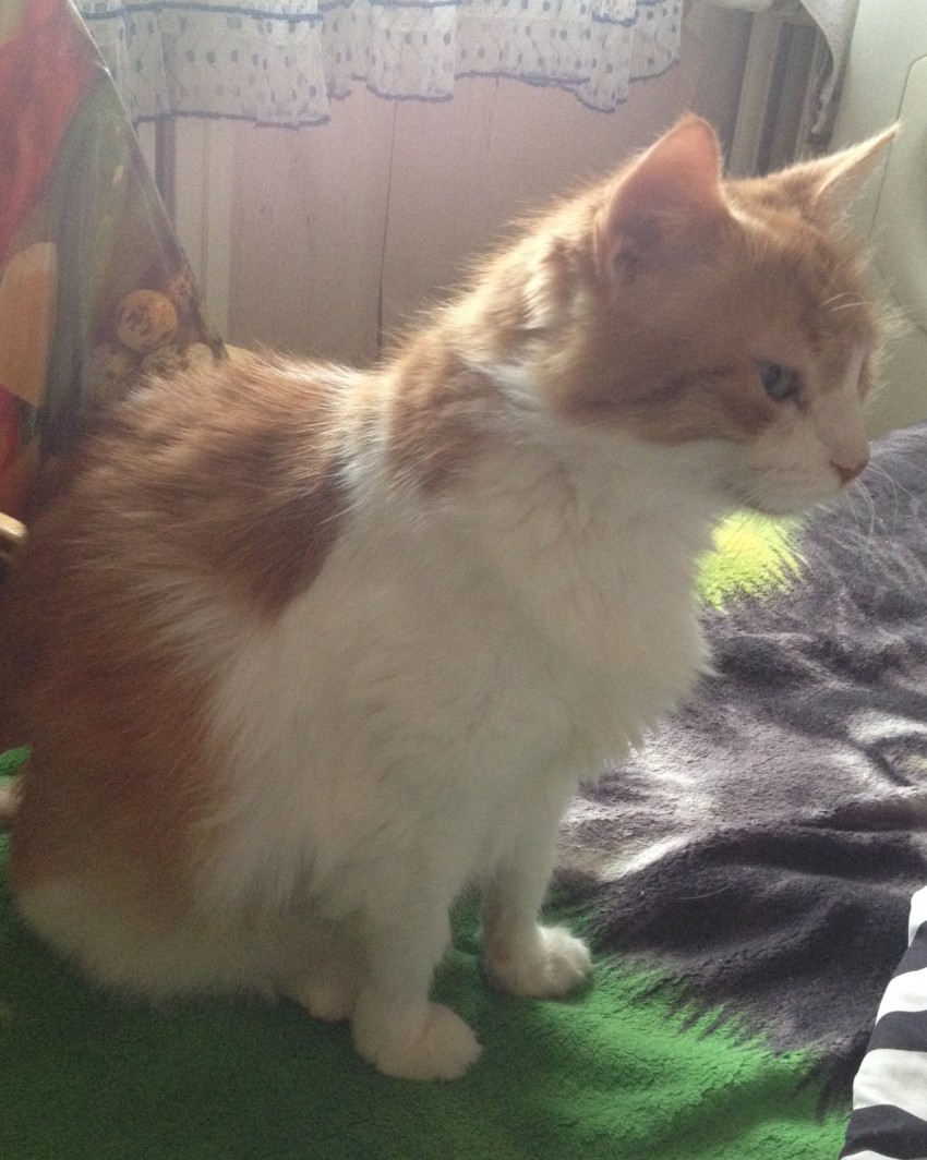 Окрас рыжая с белым, кошка старенькая, очень домашняя — улицы боится.