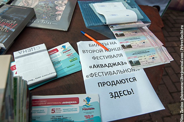 23. Возле входа в Зеленый театр можно было купить билеты на завтрашнее выступление, а так же приобрести диски с джазовой музыкой выступающих: