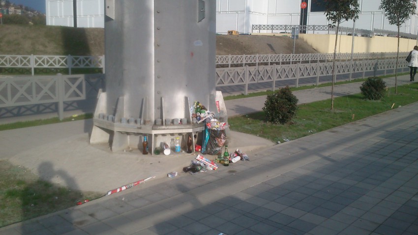 Позже до меня дошло! Урны нет ни одной!!! Благо народ не в речку свои продукты моремолдеятельности сбрасывают и не раскидывают по газонам (хотя какие там газоны, кролик от голода сдохнет). Ну не виноват люд сочинский что есть и пить хочут прям у речки, а таскать мусор тоже не охота…