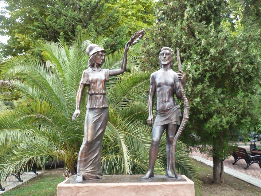 Так было со скульптурками Халафяна у выставочного зала: такое впечатление, что это просто склад на воздухе ( + там же и Руно). Было бы куда интереснее вдруг увидеть одну из них где-нибудь на прогулочных набережных, просто среди зелени. То начинают осваивать место рядом с Островским: и сирена, и отдыхающий, и римские борцы.