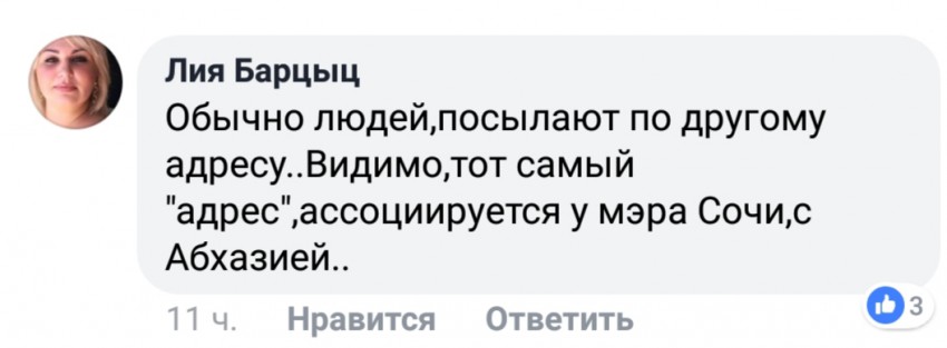 Абсолютно понятны мотивы поведения гражданина Езугбая В.О., которые продиктованы меркантильными интересами. Его провокации преследуют единственную цель — оказать давление на власть для решения своих личных вопросов. Он вместе с членами своей семьи незаконно захватил помещения в общежитии по адресу ул. Донская, 15. Одна комната ещё в 90-х была предоставлена семье Езугбая, в составе четырёх человек (матери, бабушки, родного брата и его самого) как социальное жильё по прибытию в Сочи в статусе беженцев во время грузино-абхазской войны. Известно, что со временем бабушка приобрела в г.Сочи трехкомнатную квартиру, в которой и жила семья. Затем ещё одну однокомнатную квартиру, где сейчас проживает брат Езугбая с семьёй. Сам Вахтанг Омарович незаконно захватил жилые помещения в том же доме по адресу ул.Донская, 15. При попытках представителей власти выселить из незаконно занимаемых помещений гражданина Езугбая, он устраивает шумные провокации. Так, несколько недель назад он ворвался в администрацию Центрального района во время приёма граждан, устроил скандал, нецензурно выражался, — фактически сорвал приём. Его псевдоправозащитная деятельность активизируется каждый раз, как поднимается вопрос о необходимости освободить незаконно занимаемые им комнаты. Неделю назад, 24 сентября, представителями власти и правоохранительных органов помещения вновь были опечатаны. Как следствие — очередная провокация. Глава города осведомлён о сложившейся ситуации. Именно поэтому мэр отказался вести диалог с данным гражданином во время прогулки по Имеретинской набережной.
