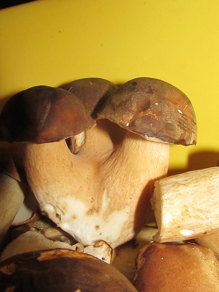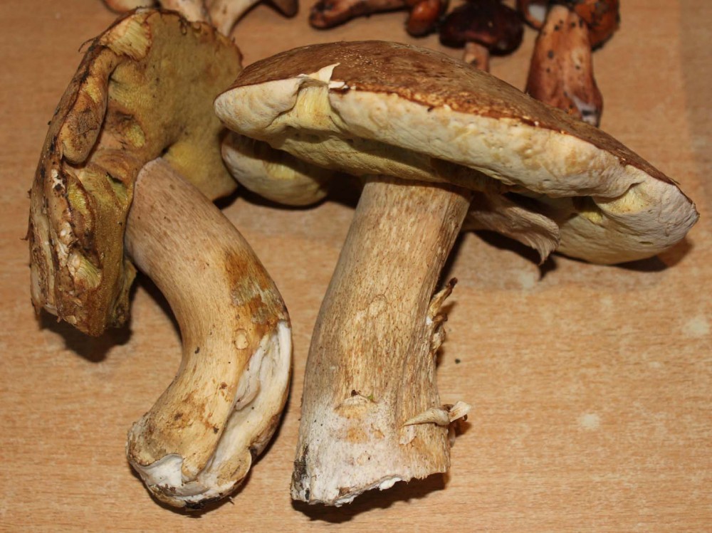 2-е фото: Жёлчный гриб, же́лчный гриб (Tylopilus felleus) — Молодой жёлчный гриб с ещё неокрашенными порами можно спутать с белым грибом и другими боровиками (боровик сетчатый, боровик бронзовый), иногда его путают с подберёзовиками. Отличается от подберёзовиков отсутствием чешуек на ножке, от боровиков тёмной сеточкой (у боровиков сеточка светлее основной окраски ножки).