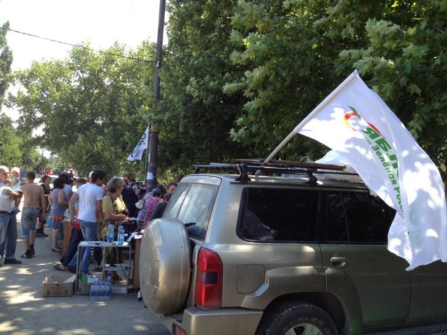 А один политик, участвующий сейчас в событиях на Кубани выставляет флаги партии «Яблоко», располагает свои пункты раздачи помощи.