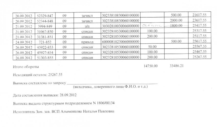 Отчет по поступившим средствам на счет ТОВТ И.В.