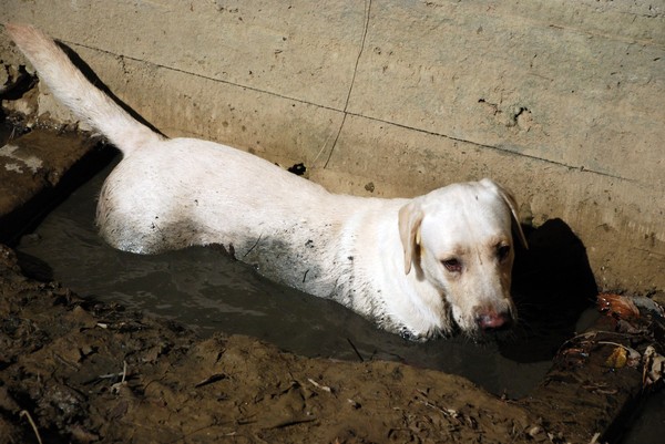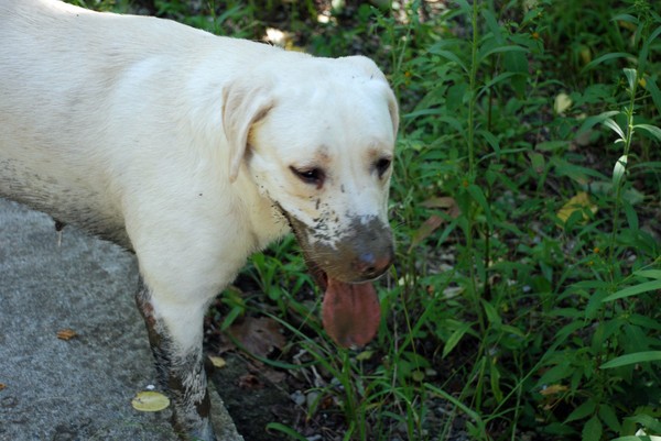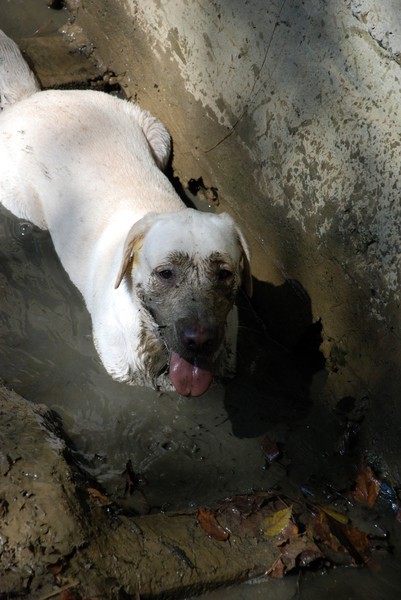 когда подбирала породу для сына… читала в интернете много статей про лабрадоров… в одной из них очень понравилось, не дословно, но суть такова — если вы гуляете с лабрадором на природе, в лесу и вдруг потеряли его из вида… то не переживайте! просто ищите ближайший водоём… и не важно, будет ли это озеро, река или грязная лужа… будьте уверены, ваш лабрадор именно Там!)))