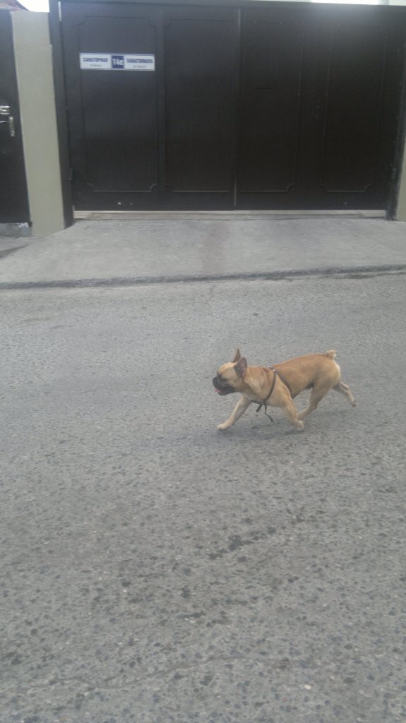 На ул. Санаторной около д. 23 бегает французский бульдожек. В руки не дается — забрали бы домой на передержку. Убегает, лает. Боюсь попадет под машину, по поведению понятно, что вообще не знает что такое улица. Хозяева, откликнитесь!!!
