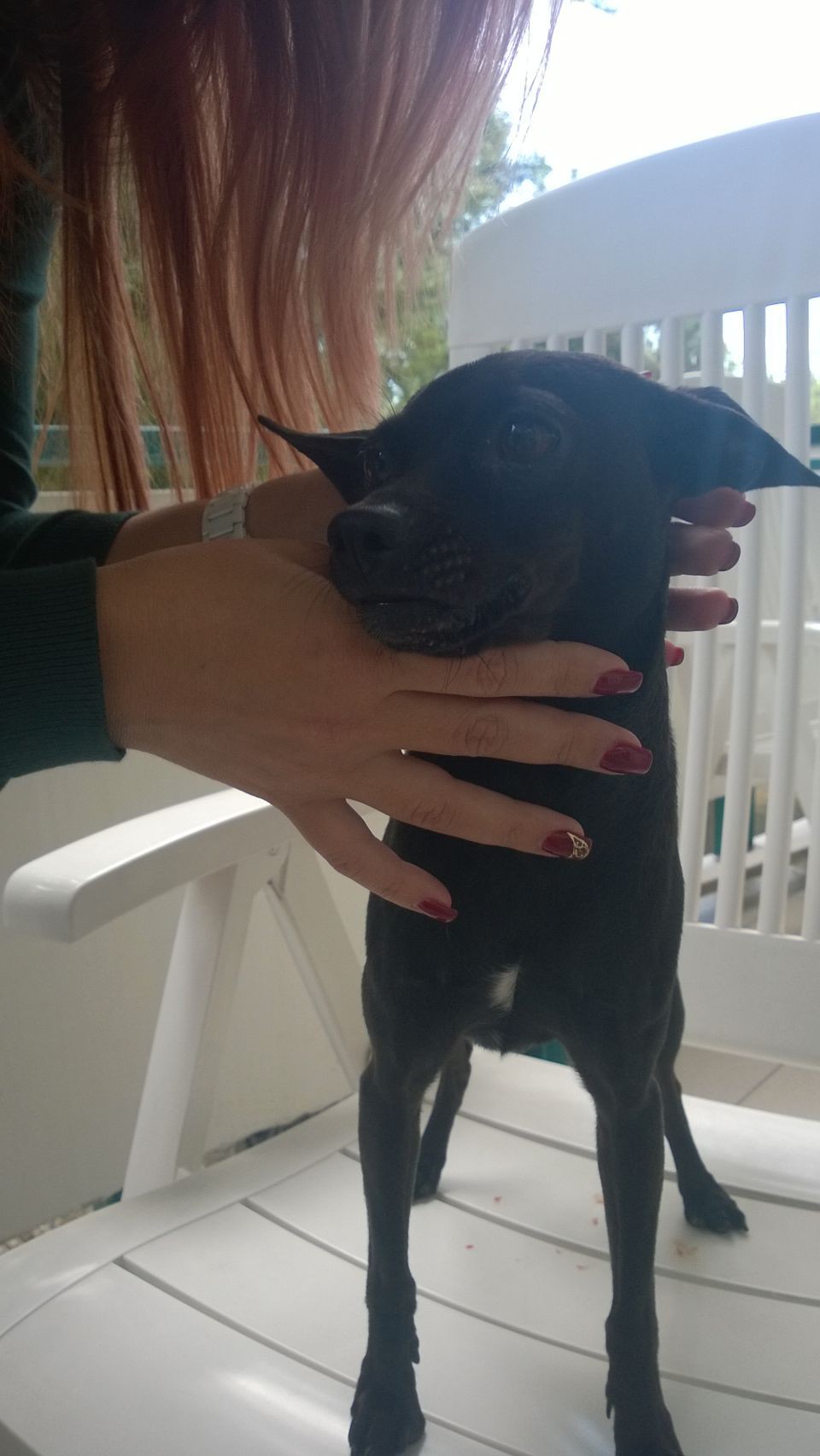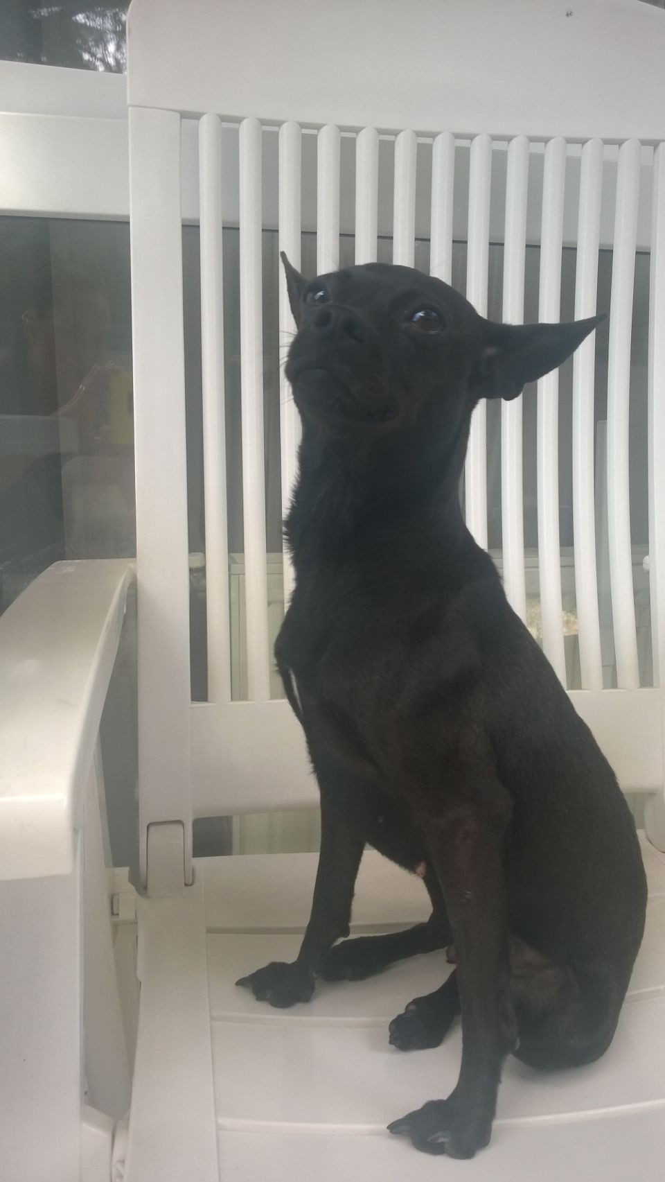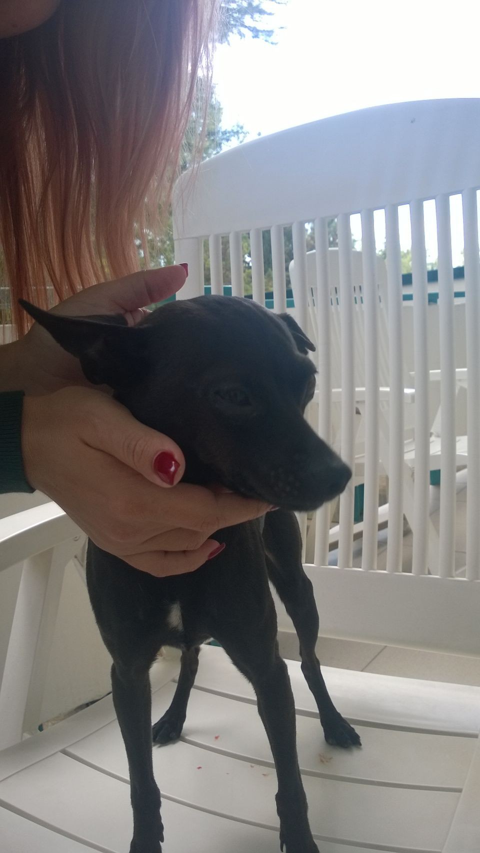 Найдена собака (в районе санатория Весна, Адлер), девочка, порода предположительно русский той-терьер, тёмно-шоколадного окраса.