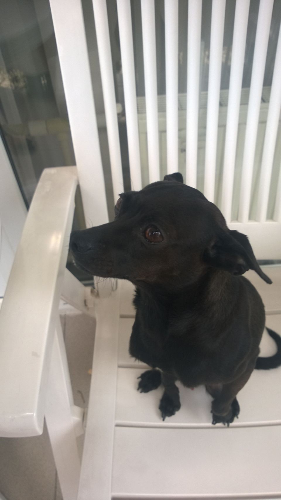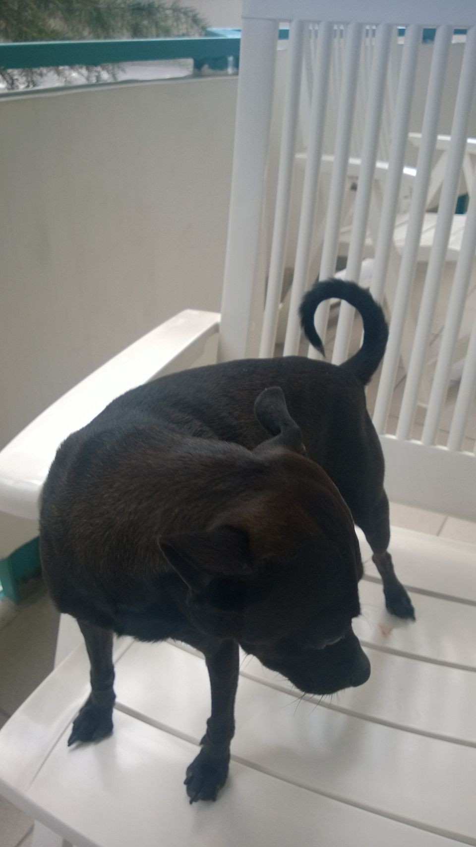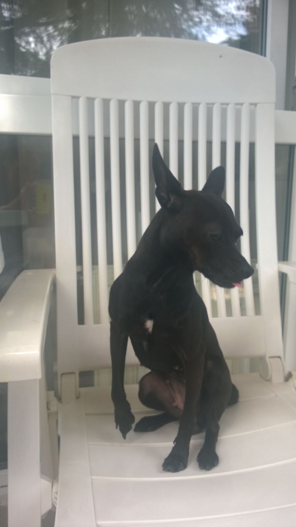 Найдена собака (в районе санатория Весна, Адлер), девочка, порода предположительно русский той-терьер, тёмно-шоколадного окраса.