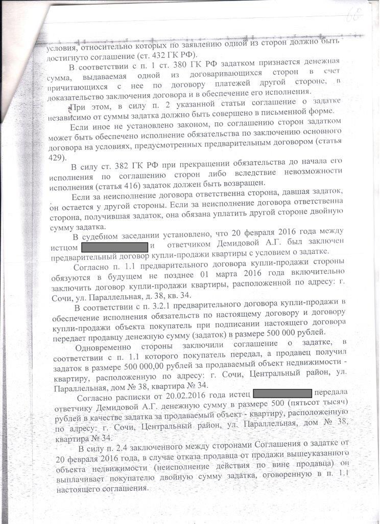 Ведь беря задаток гражданка знала что продать квартиру она не может…