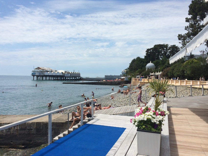 Честно сказать, про детский санаторий им. Семашко знаю, живу по-сочинским меркам недалеко, но ни разу в тех краях не была. Долгие выходные предоставили такую возможность. Оказалось, отличное место, недавно отремонтированная бетонная дорога ведёт прямо к пляжу (сразу говорю: проезд запрещён). Всё замечательно, окружающий пейзаж радует глаз: мусора — НЕТ!!! Но вот, когда дошла до пляжа, увидела это: