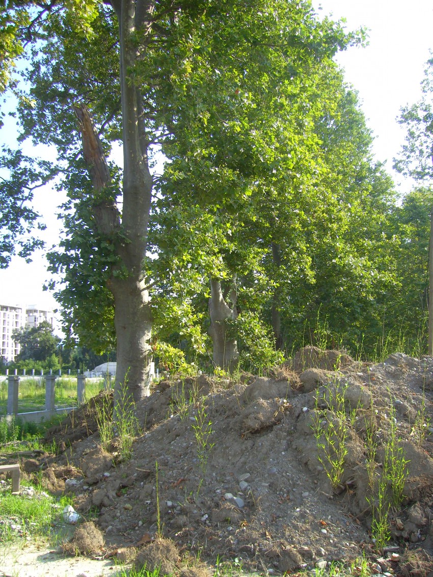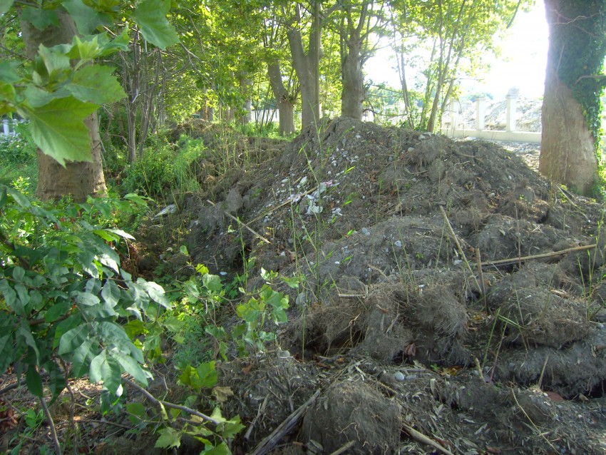 Некоторое время назад на части парка, которая выходит к морю (то есть с трудом отвоеванную Платановую аллею) стали свозить землю. Свежая и плодородная земля для деревьев очень даже полезна. Непонятны и беспокоят два момента: почему земля остается лежать нетронутой в кучах и почему в ней так много корневищ бамбука?!