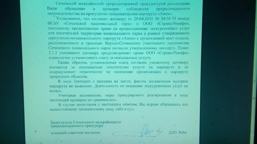 По полету господина Фрамера на Аишху — как ответил заповедник, он к этому отношение не имеет
