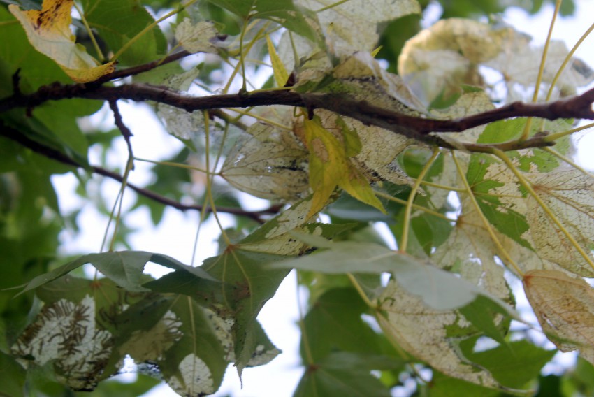 В разных районах Сочи наблюдаются покрытые паутиной деревья, зараженные белой американской бабочкой. Для борьбы с насекомым-вредителем необходимо обрабатывать деревья в два этапа (в июне и августе), но сделано это было не везде.