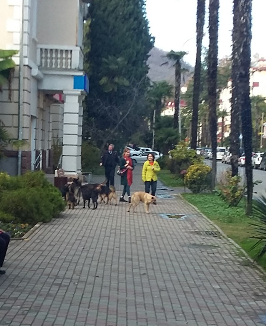 Внимание всех жителей, кто ходит вдоль набережной реки Псахе на Мамайке. Несколько бродячих собак сбились в стаю и агрессивно ведут себя по отношению к проходящим мимо них людям. Обычно они появляются с неизвестной женщиной обмотанной в платок на голове в больших солнцезащитных очках на пол-лица, которая роется на помойках и собирает разный хлам и одновременно подкармливая этих собак. Будьте осторожны, особенно с детьми, эти собаки уже несколько раз нападали на меня лично и укусили за руку.