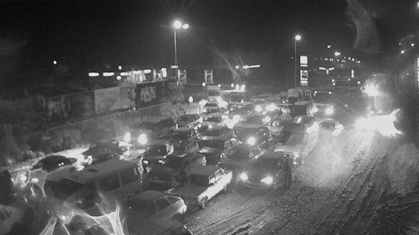 Я только что созвонилась с другом, который там работает. Он выехал с работы в половину шестого. Зашел домой 10 минут назад. Все завалено. Выпускают только легковые машины, да и то, если очень попросить и в ограниченном количестве. На расчистке работают грейдеры, но, видимо, это не сильно помогает.