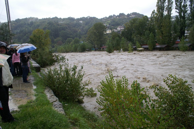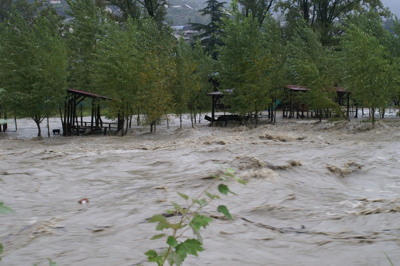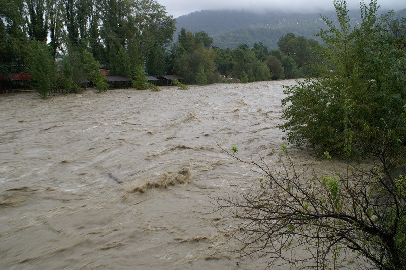Вода в реке на обычном уровне когда в Сочи дождь больше суток.