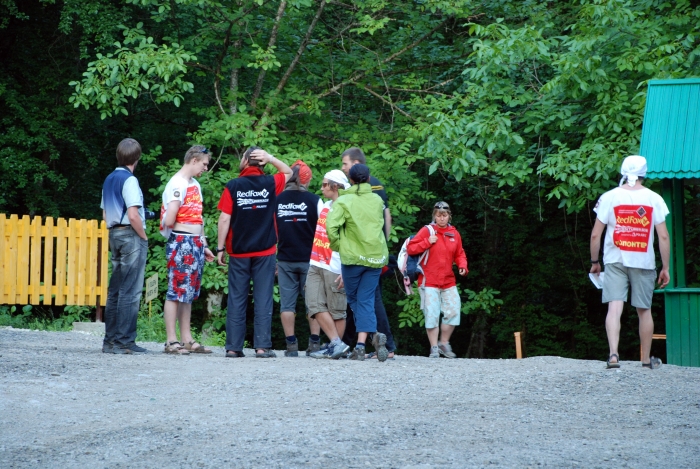 в общем, во второй день участники стартовали с Воронцовки уже без вело… треккинг до Белых скал, там каньонинг, потом спортивное ориентирование, потом каньонинг на Агуре, затем виаферрата и плавание.
