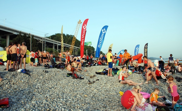 Если первая команда пришла к финишу в 15-30, вторая только через полтора-два часа, а последняя успела только к заходу солнца, то как иначе? Это издержки профессии. Народ купался, общался, пил пиво, приезжим журналистам было предложено на пару часов съездить в Сочи погулять (но никто не поехал).