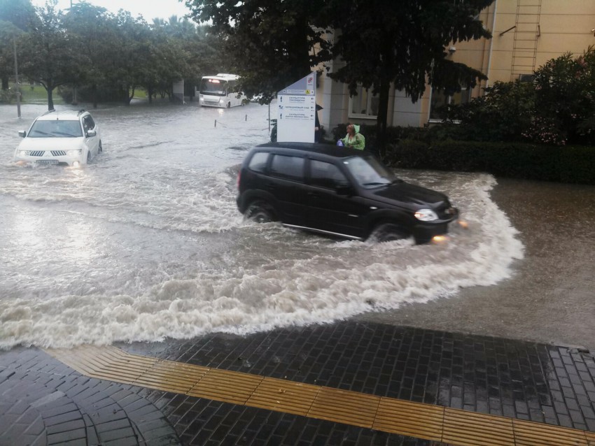 Второй понедельник подряд в Сочи потоп. Это опровергает народную примету, что дожди — это к выходным. В прошлый понедельник я видел как утонули машины возле адлерского вокзала. Жалко людей.