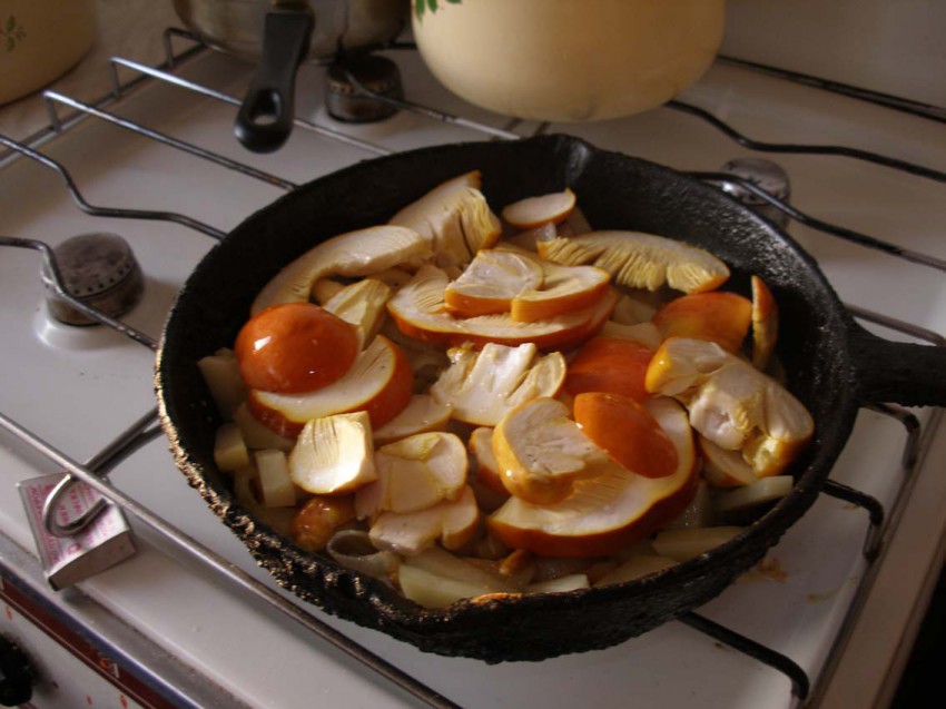 причем много переростков- на десяток отобранных к употреблению, шесть уже мягкие, оставил на развод. Но десяток тоже хорошо: не знаю ск-ко по весу (для масштаба сфотил с садовым ножом) но наконец-то хватило на хорошую кастрюльку супчика, настоящего! Ароматы при готовке… а вкус… специфический!