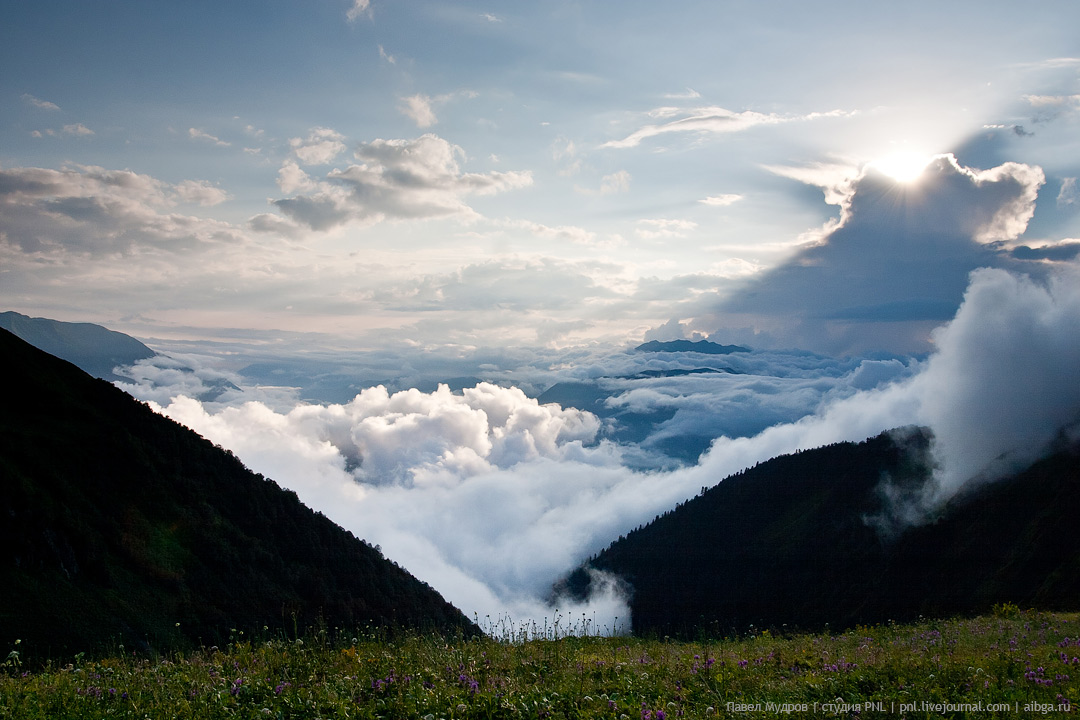 2. Закат над Красной Поляной с перевала Бзерпи. Июль.