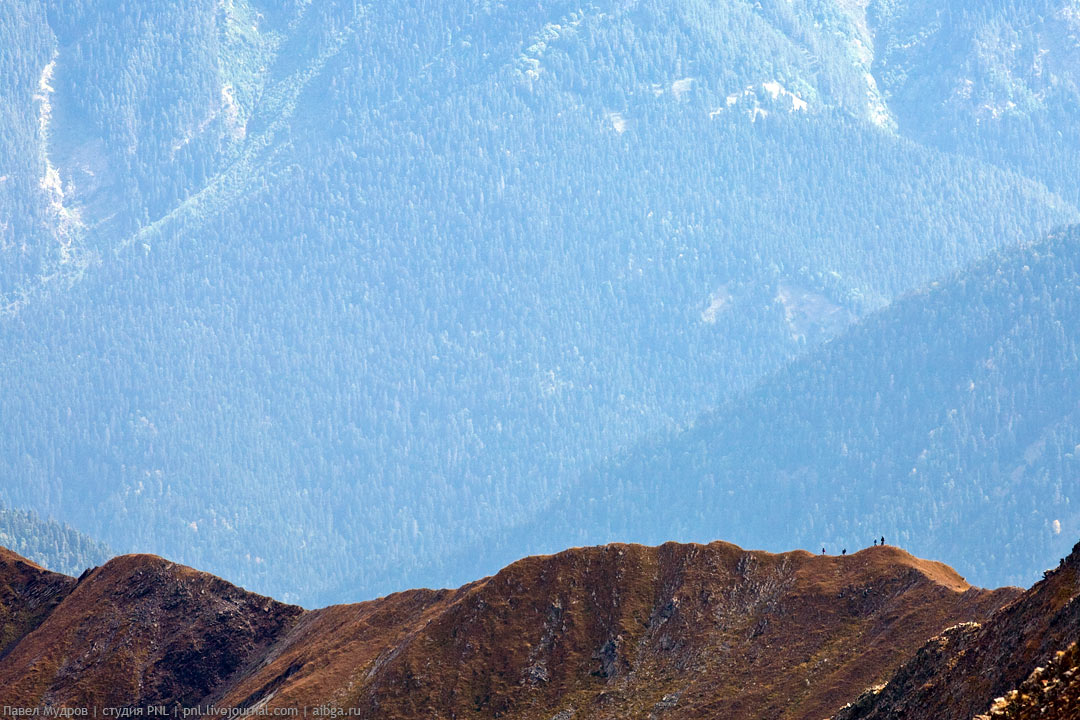 4. Группа людей на северо-восточном гребне горы Тыбга. Сентябрь.