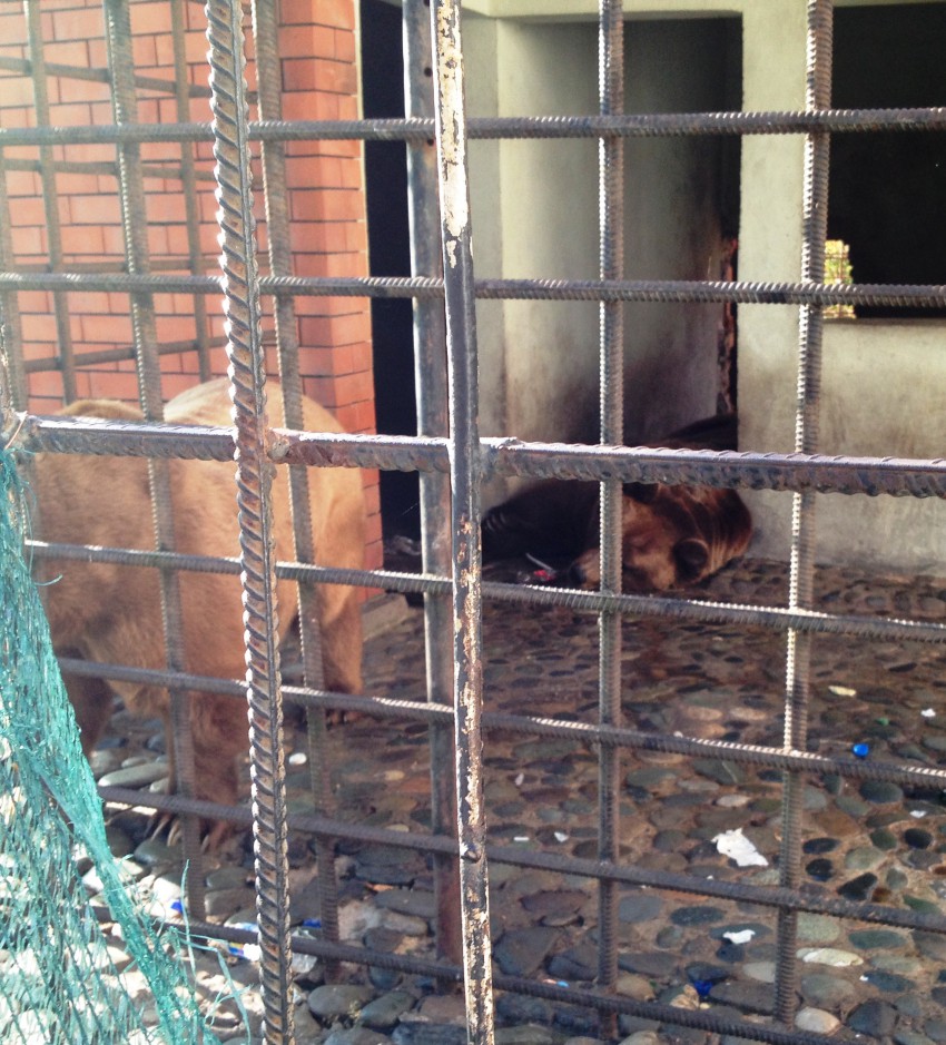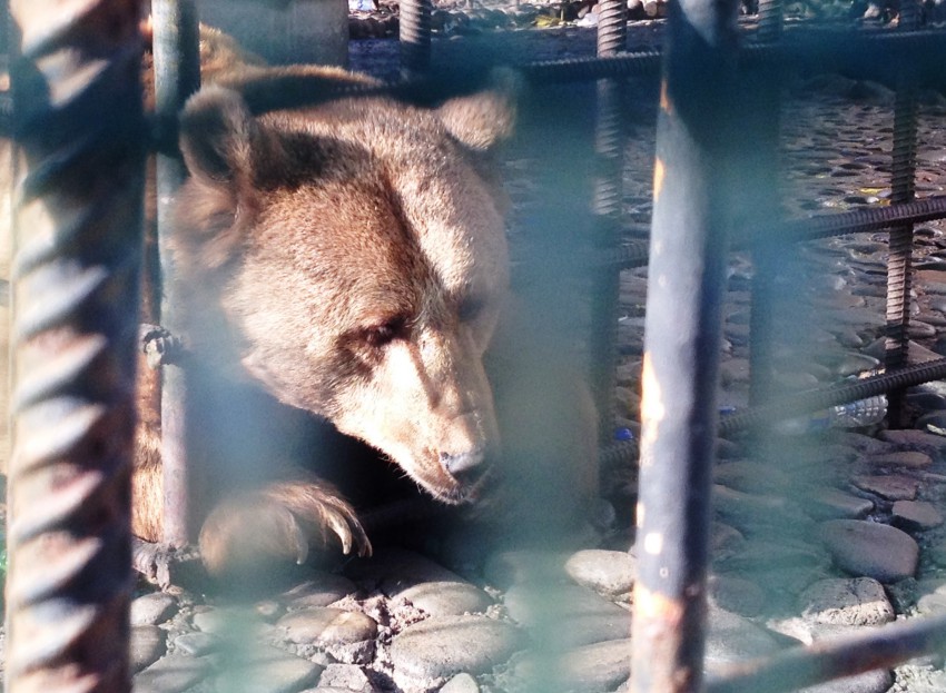 Я из Москвы, но сейчас нахожусь временно в Сочи и случайно попала в место, которое просто ужаснуло. В тесном вольере рядом с помойкой живут (если это так можно назвать) два несчастных взрослых медведя. Как я узнала из рассказа местных жителей, звери принадлежат владельцу близлежащего ресторана «Пацха-Гурия». Видимо, их кормят, но на этот частный «зоопарк» больно смотреть. Вольер завален мусором, стоит ужасающий запах, питьевой воды нет, медведи лежат и безучастно смотрят в одну точку. Говорят, что один из них ослеп. Я никогда не была защитником животных и вообще ни в чем подобном не участвовала, но не могу забыть бедных медведей. Такого плохого содержания диких животных я еще не видела.