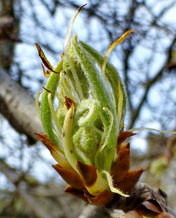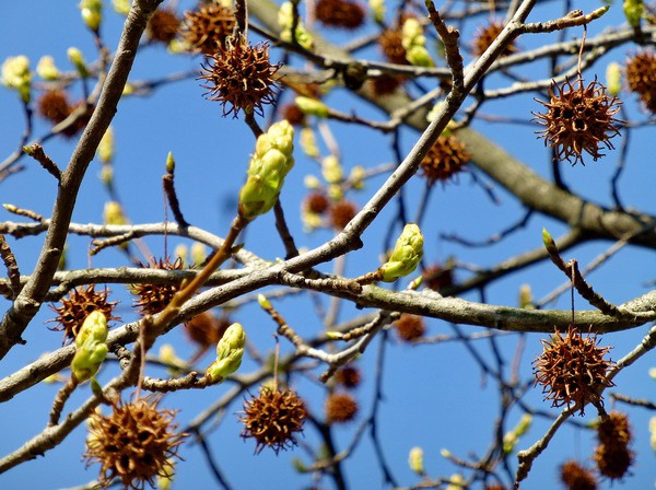 Ликвидамбр не убрав прошлогодние «серёжки», спешит обзавестись новыми.