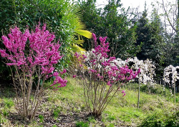 Под церцисом расцвёл ирис.