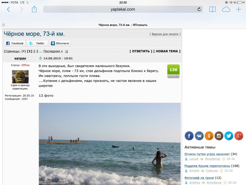 Чёрное море, пляж — 73 км, стая дельфинов подплыла близко к берегу.