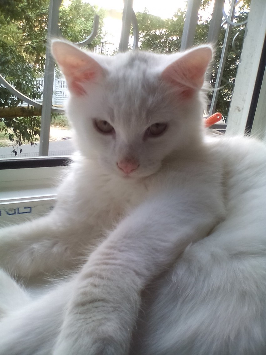 к нам в подъезд приблудился сегодня кот, истошно кричал был сильно напуган видно что домашний халеный, видно что потерялся то ли с нашего дома то ли откуда то прибежал! чисто белый с жолтыми глазами… может кто ищет!