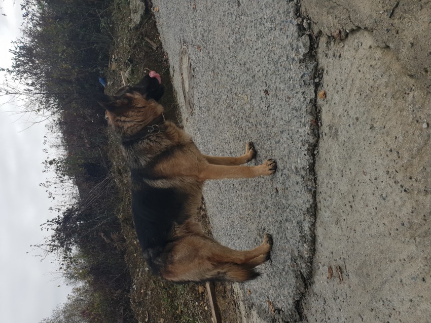 Бегает сильно истощённый кобель немецкой овчарки. На нём два ошейника — текстильный зелёный и коричневый кожаный, без адресника. Кобель робкий, в руки не даётся, но и не уходит далеко, прибился к нашей стайке собак-заворотнюков. По виду не старше 3х лет, без седины. Находится наверху Овощного переулка, недалеко от озера. Мог прибежать с Овощного, Высокогорной, Армянской, или КСМ Речной пер. и т.д.