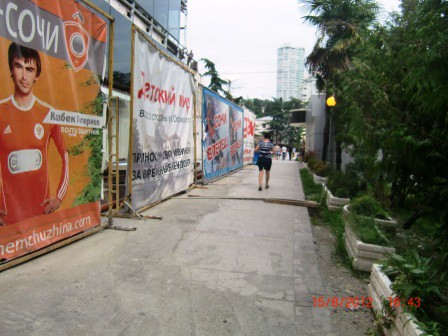 Теперь еще и встроенные тротуары в проекте появились. Объясняю: жадный застройщик получает в аренду землю. Ему нужно впоследствии получить с неё максимум выгоды. А максимум — это когда? Правильно, когда застраивается абсолютно вся площадь. Чтобы получить такую возможность, застройщик должен пройти через т.н. общественные слушания. Там его костерят нещадно жители Сочи, но комиссия, которая тоже совершенно случайно имеет непосредственное отношение к управлению архитектуры, практически никогда не рекомендует отказать застройщику.