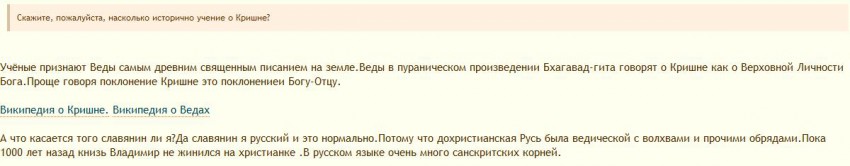 Кришнаитсво более позднее течение и имеет много заимствований от дравидов и новых изысков, что бы считать чистой от прародителей по принесенной гаплогруппы R1a1 где у славян превалирующая такая же гаплогруппа (родноверы и нацисты в бешенстве).