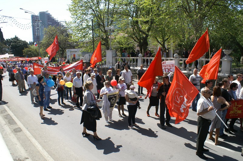 1 мая в Сочи выдался погожий, солнечный день. Первомайский митинг в Сочи, организованный горкомом КПРФ, в этом году пополнился активистами микрорайона Кудепста, выступающими против строительства на селитебной курортной территории крупнейшей в мире газопоршневой ТЭС.