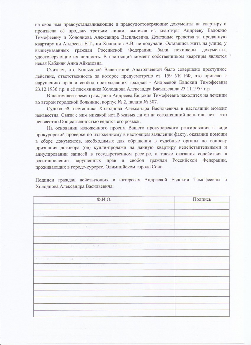 Заявление в прокуратуру завтра напишет юрист Николай ( его офис находится ул.Советская 42, 3 этаж), это заявление должны подписать как можно больше людей, для того чтобы прокуратура отреагировала на данный случай.