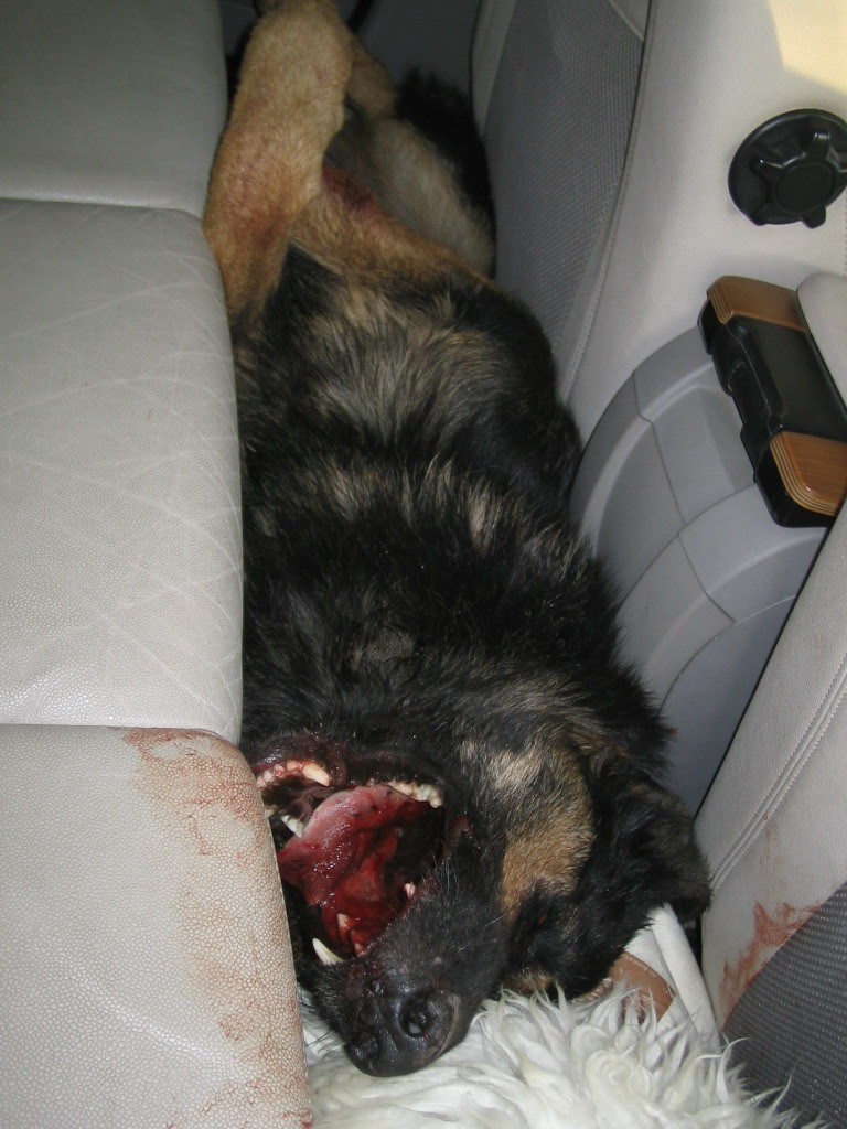 Я только так и не понял, собак от чего умер? Внутреннее кровотечение? Может все таки под машину попал?